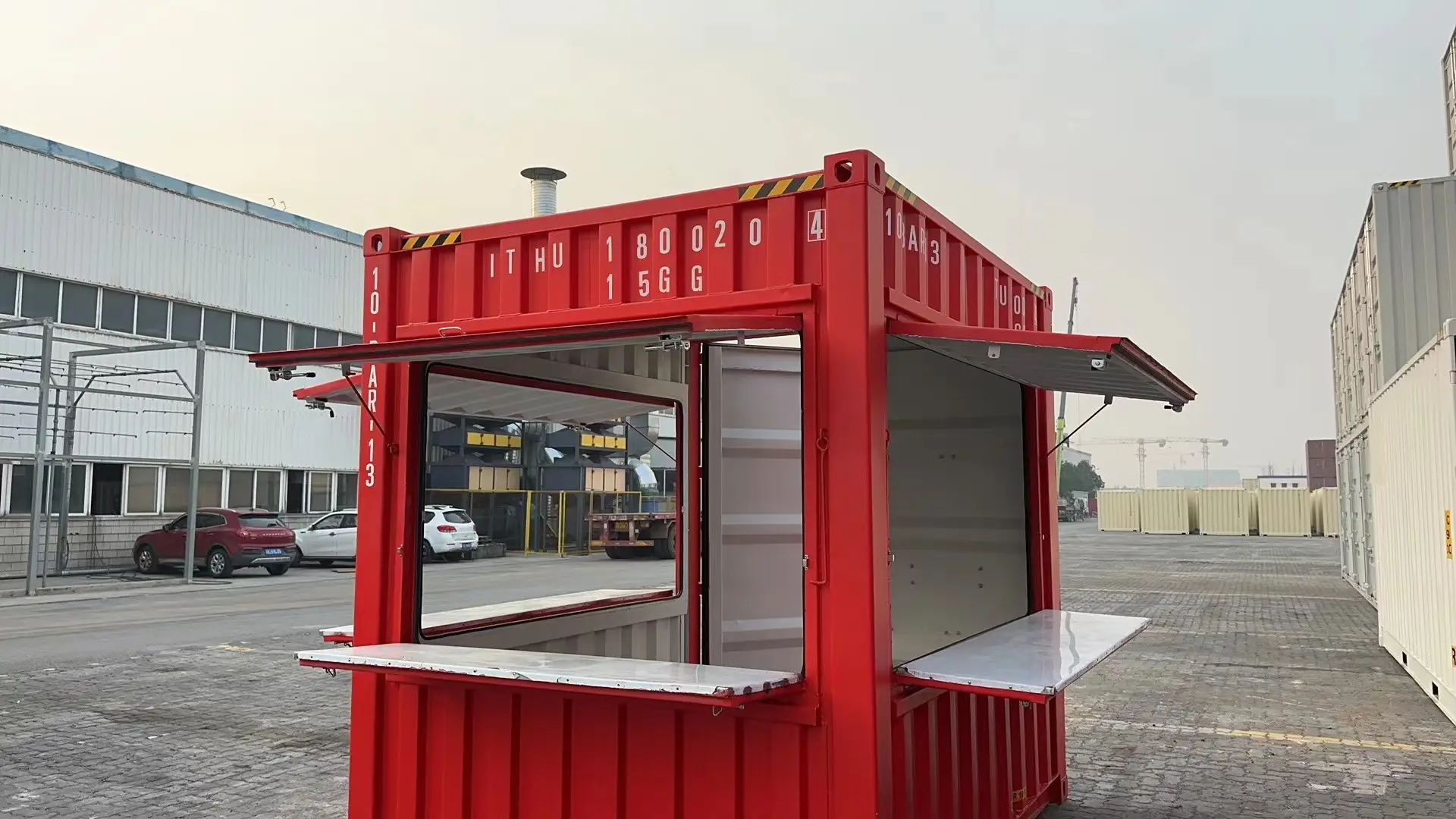 Il container High Cube Café da 3 metri presenta un esterno rosso acceso che catturerà sicuramente l’attenzione dei passanti e un interno bianco per una facile personalizzazione. Offriamo anche molte altre opzioni di colore per abbinarlo al tuo marchio o creare un look unico. Con la sua struttura robusta, l’ampio spazio e l’esterno accattivante, questo container non passerà inosservato ovunque tu lo porti.